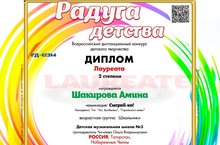 Поздравляем Заслуженного работника культуры РТ Чигилеву Ольгу Владимировну и её воспитанницу Шакирову Амину с успешным участием во Всероссийском дистанционном конкурсе детского творчества "Радуга детства".