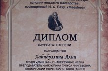 Поздравляем Файзуллину Гулусу Чингизовну и её воспитанницу Хабибуллину Алию с достойным участием в III Международном музыкальном конкурсе исполнительского мастерства, посвященном И.С.Баху "Maestoso" в г.Ижевск.
