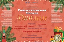 Поздравляем Хусаенову Диану (преподаватель Газизова М.А.) с успешным участием во Всероссийском конкурсе музыкально-художественого творчества "Рождественская Москва" в г.Москва. Молодец! Желаем новых творческих побед!