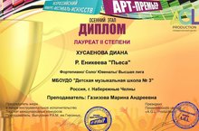Поздравляем Газизову Марину Андреевну и её воспитанницу Хусаенову Диану с успешным участием во Всероссийском конкурсе-фестивале "АРТ-ПРЕМЬЕР". Молодцы! Так держать!