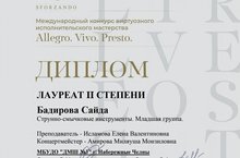 Поздравляем наших учащихся с победой на Международном конкурсе виртуозного исполнительского мастерства "Allegro. Vivo. Presto". Молодцы!