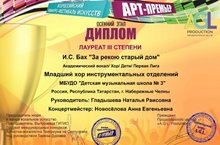 Поздравляем младший хор инструментальных отделений ДМШ №3 с успешным участием во Всероссийском конкурсе-фестивале искусств "Арт-премьер".