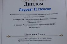Поздравляем Шатилову Елену и ее педагога Яковлеву Ирину Михайловну с удачным выступлением в г.Казань на V Открытом Республиканском фестивале-конкурсе "Жиганов-Vivo". Елена стала лауреатом II степени. Молодец!!! Желаем дальнейших творческих!!!