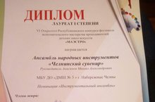 Поздравляем педагогический ансамбль народных инструментов "Челнинский сувенир" (руководитель Заслуженный работник культуры РТ Анисимов Михаил Александрович) с победой в VI Открытом Республиканском конкурсе-фестивале исполнительского мастерства преподавателей детских школ искусств "Маэстро"!