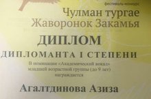 Поздравляем с успешным началом "исполнительской карьеры" нашу маленькую "звёздочку" - Агалтдинову Азизу и ее наставников - Гимадиеву Гузелию Наилевну и Газизову Марину Андреевну! Сегодня Азиза стала дипломантом престижного всероссийского конкурса.