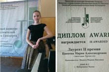 Поздравляем с успешным выступлением на II Международном конкурсе молодых исполнителей им. Р.Гуммерта в г. Казань Цапкову Марию (преподаватель Малюта М.П.), которая покорила своей игрой именитых судей. Мария стала лауреатом II премии и получила 20 т.р. от организаторов конкурса!!! Молодцы!!! Желаем Вам дальнейших побед!!!