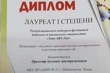 Виват ДМШ №3! Поздравляем учащихся оркестрового отделения с выступлением в Открытом Республиканском конкурсе "Tat-ARS-tan" номинация "Духовые инструменты", который прошле вчера в городе Казани: Грицков Григорий - лауреат первой степени; Третьяк Никита - лауреат первой степени; Елизавета Дерябина - лауреат второй степени; Рената Савзиханова - лауреат третьей степени; Аскар шукюров - лауреат третьей степени!!! Радость побед с ребятами разделили их преподаватель - Заслуженный работник культуры РТ Павлищева Людмила Юрьевна и концертмейстеры - Урукова Наталья Геннадьевна и Соколова Елена Александровна.