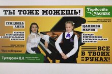 "Ты тоже можешь! Все в твоих руках!",-рекламный баннер с портретами лучших учащихся Детской музыкальной школы №2 и Детской музыкальной школы №3. Выражаем огромную благодарность спонсорам и организаторам акции!