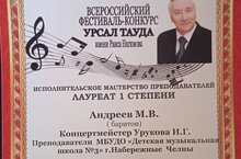 Поздравляем Андреева Максима Владимировича и концертмейстера Урукову Наталью Геннадьевну с победой в VI Всероссийском конкурсе профессионального педагогического исполнительского мастерства "ПРИЗВАНИЕ" (г.Казань)