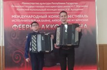 В эти выходные в столице нашей Республики проходит Международный конкурс "Феерия аккордеона", который собрал более 180 исполнителей на баяне, аккордеоне и гармони со всех уголков России. В такой сложной борьбе Сафин Руслан и Шигапов Данир (преподаватель Бахтиярова Эльмира Анасовна) успешно выступили, достойно представили школу. Сафин Руслан стал лауреатом 1 степени