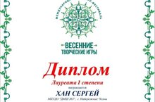 Поздравляем Сергея Хан (преподаватель Заслуженный работник культуры РТ Павлищева Людмила Юрьевна, концертмейстер Урукова Наталья Геннадьевна) с победой в Международном конкурсе-фестивале "Весенние творческие игры".