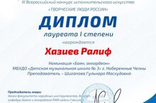 Поздравляем Хазиева Ралифа и его преподавателя Шигапову Гульнару Масхудовну с победой в III Всероссийском конкурсе "Творческие люди России"!