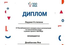 Поздравляем Дювбанову Яну (преподаватель Афзалова Марина Витальевна) с успешным участием в IV Республиканском конкурсе юных исполнителей на классической гитаре в рамках проекта "100//ЛИЦА".