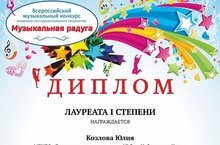 Поздравляем наших преподавателей Файзуллину Гулусу Чингизовну, Нуждину Ирину Максимовну и их воспитанников с успешным участием во Всероссийском музыкальном конкурсе вокально-инструментального творчества "Музыкальная радуга" в г.Пермь.