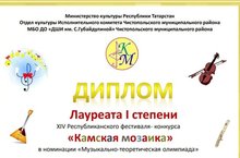 Поздравляем преподавателей теоретического отделения: Ахметову Лилию Расулевну, Александрову Светлану Юрьевну, Винокурову Ольгу Владимировну с успешным участием их воспитанников в XIV Республиканского фестиваля- конкурса «Камская мозаика» в номинации «Музыкально-теоретическая олимпиада».