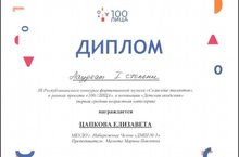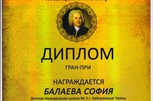 Поздравляем Бадирову Сайду (преподаватель Исламова Елена Валентиновна, концертмейстер Амирова Миляуша Монзиловна) с успешным участием в конкурсах: XI Республиканском конкурсе детского исполнительства "Семь нот " в г.Набережные Челны и V Республиканском конкурсе исполнителей на струнно-смычковых инструментах "Четыре струны" в г.Нижнекамск.