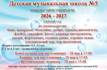 Детская музыкальная школа №5 начинает приём учащихся на 2026 - 2027 учебный год!
