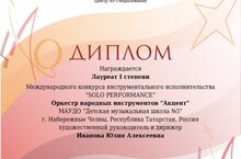 Подведены итоги IV МЕЖДУНАРОДНОГО КОНКУРСА ИНСТРУМЕНТАЛЬНОГО ИСПОЛНИТЕЛЬСТВА «SOLO PERFORMANCE». Более 200 заявок из России, Казахстана и Республики Беларусь, среди которых как солисты исполнители: учащиеся муз.школ, студенты колледжей, ссмш(колледж), так и творческие коллективы: ансамбли и оркестры. Оценивало выступления конкурсантов компетентное жюри в составе профессора КГК им.Н.Жиганова Смирновой А.Н, преподавателя РАМ им.Гнесиных, худ.руководителя и главного дирижёра Молодежного симфонического оркестра Сухарникова Ф.П. и директора Набережночелнинского колледжа искусств Спирчиной Т.В.