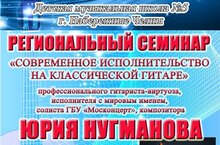 В Детской музыкальной школе №5 прошёл Региональный семинар "Современное исполнительство на классической гитаре" исполнителя с мировым именем, солиста ГБУ «Москонцерт», композитора Юрия Александровича Нугманова.