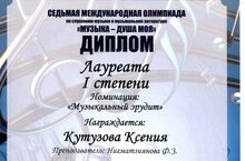 Поздравляем с результатами в Международной олимпиаде "Музыка- душа моя" 01.12.2021