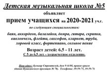 Детская музыкальная школа №5 объявляет прием учащихся на 2020-2021 учебный год.