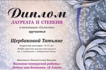 Щербакова Татьяна - лауреат Международного конкурса исполнителей общего фортепиано "Белый рояль"!