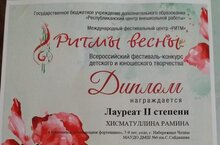 Хисматуллина Рамина - лауреат Всероссийского фестиваля-конкурса детского и юношеского творчества "Ритмы весны"!