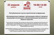 23 апреля 2022 г. приглашаем вас принять участие в Республиканской научно-практической конференции «Инновационные подходы к организации учебного процесса: предпрофессиональные и общеразвивающие программы в области искусств».