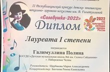 Учащиеся ДМШ №6 - лауреаты II Республиканского конкурса детско-юношеского вокально-хорового искусства имени В.Гизатуллиной "Соловушка-2022"!