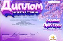 Юлтимирова Амелина - лауреат Международного многожанрового конкурса-фестиваля "Родные просторы"!