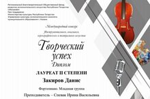 Закиров Данис стал лауреатом Международного конкурса инструментального, вокального, хореографического и театрального искусства "Творческий успех"!