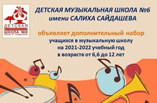 Детская музыкальная школа №6 имени Салиха Сайдашева объявляет дополнительный набор учащихся в музыкальную школу на 2021-2022 учебный год