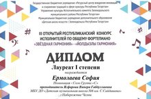 Ермолаева София - победительница III Открытого республиканского конкурса исполнителей по общему фортепиано "Звездная гармония"!
