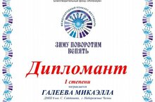 Галеева Микаэлла - дипломант Международного конкурса-фестиваля "Зиму поворотим вспять"!