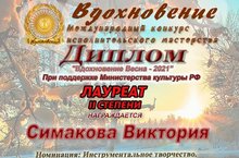 Симакова Виктория - лауреат Международного конкурса исполнительского мастерства "Вдохновение Весна - 2021"!