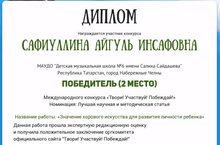 Сафиуллина А.И. - победитель Международного конкурса "Твори! Участвуй! Побеждай!" в номинации: "Лучшая научная и методическая статья".