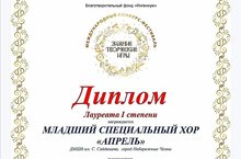 Поздравляем Младший специальный хор "Апрель", руководителя Серову М.А. и концертмейстера Паскичеву Д.С. с победой в Международном конкурсе-фестивале "Зимние творческие игры"!