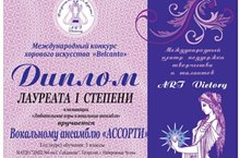 Поздравляем среднюю группу вокального ансамбля "Ассорти", руководителя Мардамшину Т.Р. и концертмейстера Склямину Л.С. с победой в Международном конкурсе хорового искусства "Belcanto"!