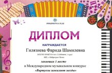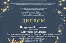 Поздравляем Харисову Альмиру (класс преподавателя Гайсиной Э.А.) с высоким результатом в Международном конкурсе-фестивале "Новогодние звезды" проекта "Музыкальный Олимп"!