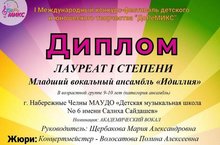 Младший вокальный ансамбль "Идиллия" стал лауреатом 1 степени на I Международном конкурсе-фестивале детского и юношеского творчества "ДоРеМИКС" (ноябрь 2020, г.Рязань).