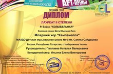 Всероссийский конкурс-фестиваль искусств «Арт-Премьер» ( г. Москва). Младший хор «Кампанелла» - лауреат 2 степени. Руководитель Паллаева Наталья Валерьевна, концертмейстер Ильина Елена Викторовна.