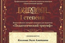 Поздравляем Козлову Зилю Азатовну, преподавателя народного отделения ДМШ №6 с отличным результатом участия во Всероссийском интернет-конкурсе для педагогов "Педагогический триумф"! ДИПЛОМ 1 степенив номинации "Лучшая педагогическая статья" по теме "Дистанционное обучение в ДМШ по специальности. Из опыта работы".