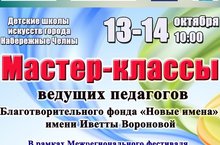 В Детских школах искусств города Набережные Челны 13-14 октября при поддержке Фонда президентских грантов пройдут Мастер-классы ведущих педагогов Благотворительного фонда «Новые имена» имени Иветты Вороновой с лучшими учащимися региона