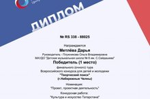 Творческую исследовательскую работу на тему "КУЛЬТУРА И ИСКУССТВО ТАТАРСТАНА" представила учащаяся ДМШ№6 ДАРЬЯ МЕТЛЕВА под руководством преподавателя ПЛУЖНИКОВОЙ ОЛЬГИ ВЛАДИМИРОВНЫ.