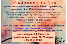 О начале набора учащихся в музыкальную школу 12.05.2020