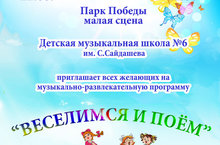 Приглашаем всех желающих 22 августа на музыкально–развлекательную программу «ВЕСЕЛИМСЯ И ПОЁМ», которая состоится на малой сцене парка Победы. Начало в 11:00. Интересную программу представит Детская музыкальная школа №6 имени Салиха Сайдашева при поддержке управления культуры Исполнительного комитета г.Набережные Челны. Яркие концертные номера, подвижные игры, загадки, сладкие призы - поднимет вам настроение на целый день!