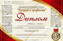 Международная премия педагогического мастерства в области культуры и искусств "Лучший в профессии", г.Санкт-Петербург.