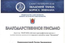 Одним из знаменательнейших событий для школы явилось поступление учащейся ДХШ Алексеевской Екатерины в Академию танца Бориса Эйфмана в г. Санкт – Петербург. Преподаватели – Фролова Т.А., Фахретдинова Э.Р. Браво, уважаемые преподаватели! Поздравляем директора школы Нурмухаметову Лилию Эдуардовну! Ведь, кто, как не наши любимые ученики являются нашей гордостью и радостью.