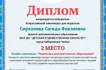Преподаватель МАУ ДО «ДХШ №1» Сиразиева С.Ф. приняла участие в онлайн Олимпиаде «Педагогика дополнительного образования». 06.03.2017