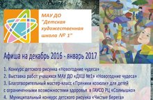 Афиша новогодних мероприятий МАУ ДО «ДХШ №1» на декабрь 2016 - январь 2017г. 12.12.2016